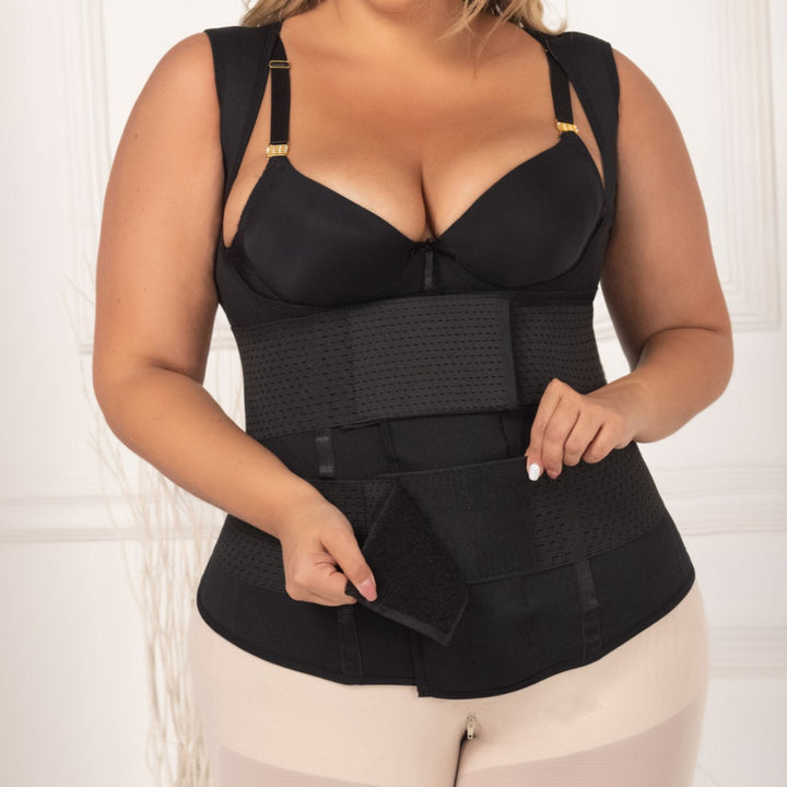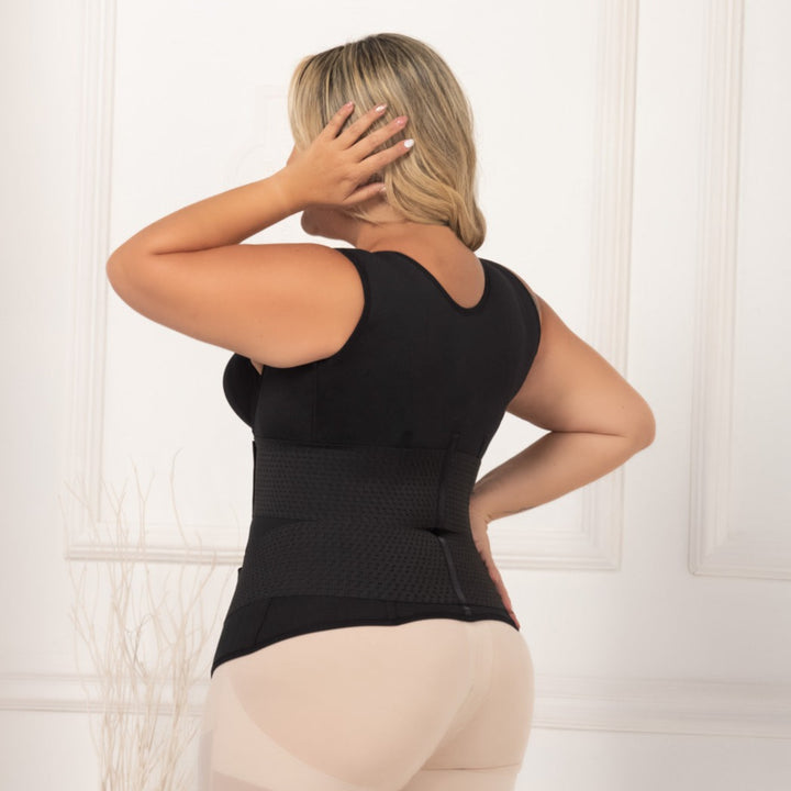 Faja Cinturilla en Neopreno es ideal para acompañarte en tus rutinas diarias. Los beneficios que brinda es que te ayuda a producir más sudor lo cuál elimina las toxinas del cuerpo. Este chaleco en neopreno también te ayudara a mantener una postura adecuada. Cuenta con bandas elásticas y 3 niveles de broches para mayor compresión.